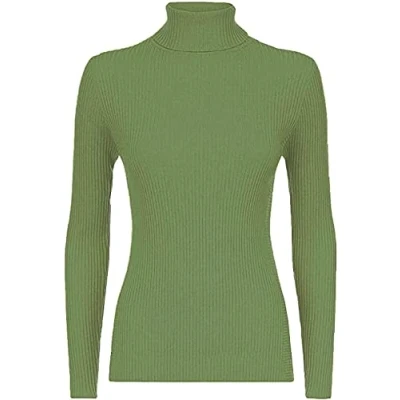 LUXE DIVA Women Ladies Ribbed Stretch Polo Turtle Neck Rib Top Jumper UK Size S/M XXXL Khaki
