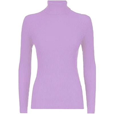 LUXE DIVA Women Ladies Ribbed Stretch Polo Turtle Neck Rib Top Jumper UK Size S/M XXXL Lilac