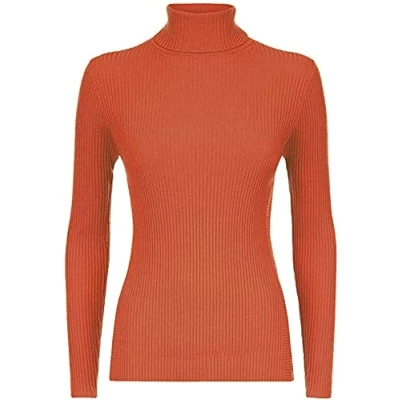 LUXE DIVA Women Ladies Ribbed Stretch Polo Turtle Neck Rib Top Jumper UK Size S/M XXXL Rust