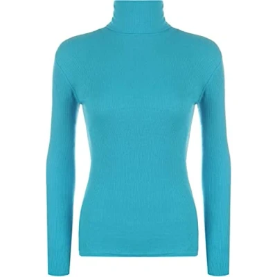 LUXE DIVA Women Ladies Ribbed Stretch Polo Turtle Neck Rib Top Jumper UK Size S/M XXXL Turquoise