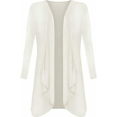 LUXE DIVA Womens Ladies Plain Draped Open Waterfall Boyfriend Cardigan Asymmetric Irregular Hanky Hem Long Sleeve Cardi Top Loose Baggy Jacket Blazer Cream
