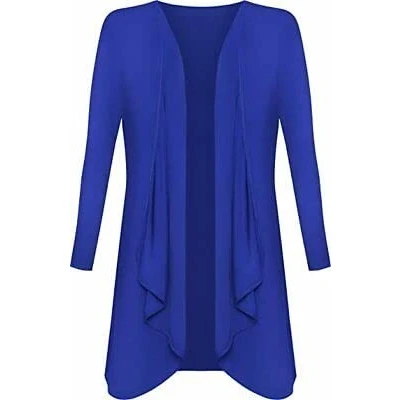 LUXE DIVA Womens Ladies Plain Draped Open Waterfall Boyfriend Cardigan Asymmetric Irregular Hanky Hem Long Sleeve Cardi Top Loose Baggy Jacket Blazer Royal Blue