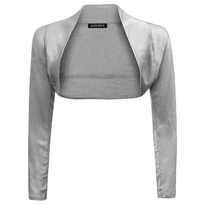 LUXE DIVA Womens Plain Long Sleeve Bolero Shrug Crop Top Ladies Cropped Cardigan Tops UK 8 26 Grey