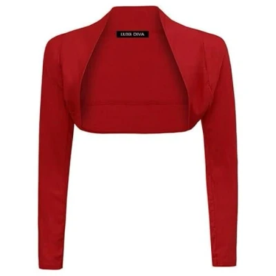 LUXE DIVA Womens Plain Long Sleeve Bolero Shrug Crop Top Ladies Cropped Cardigan Tops UK 8 26 Wine