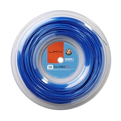Top string on Pro Tour - used by roughly 60% of Top 100 Tour players Superior power, control and spin potential on clay court Each set individually numbered for quality assurance Contains Luxilon's unique poly-ether-ether material, Coated with signature blue color emblematic of the French Open Scope of delivery: 1x Luxilon tennis string, Alu Power 128 RG roll, length: 200 m, colour: blue / white, WR8310901128