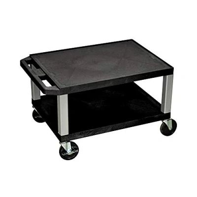 Multipurpose utility cart perfect for use with audio/video equipment and more. Made of recycled molded plastic shelves that will not chip, warp, scratch, rust or peel. Two 1.5"-thick flat shelves with raised, textured surface to ensure minimal sliding. Assembly required. Made in the USA. Overall Dimension: 24"W x 18"D x 16"H