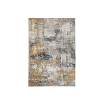 LUXOR Living Prima Room Rug in Vintage Design Short Pile Digital Print Timeless Grey/Yellow 80 x 150 cm