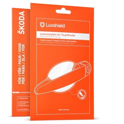 PERFECTLY FITTED: for Enyaq iV 5A I 2021 - 2025 in a Set of 4 EFFECTIVE CAR PROTECTIVE FILM: The door handle recesses are particularly at risk of damage. Over time, fingernails cause scratches to the paint. Our robust stone chip protection film protects these areas effectively and invisibly from scratches on the door. APPLY EASILY: The self-adhesive film can be applied SIMPLY & BUBBLE-FREE using a wet application method. Simply clean the surface well and spray the film and surface generously with tap water. Then push out the water with your clean fingers until the foil sticks. HASSLE-FREE REMOVAL: Luxshield Paint protection film does not leave any residues when removing (warm up beforehand) even after years and thus protects your cars paint MADE IN GERMANY: Best quality and optimal fit directly from Germany