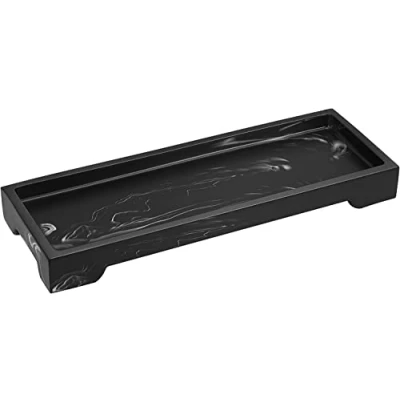 Luxspire Vanity Tray, Bathroom Tray Toilet Tank Storage Resin Kitchen Sink Trays, Countertop Organizer for Candles Soap Towel Perfume Holder Jewlery Dish Decor, Marble Style,S,Matte Black