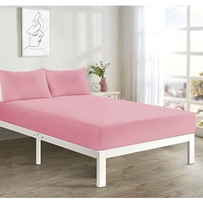 Luxurious Easy Care Polycotton Fitted Sheets Cotton Rich Super Soft Year Round (King, Pink)