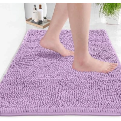 LuxUrux Bath Mat Extra Soft Plush Shower Bathroom Rug, 1'' Chenille Microfiber Material, Super Absorbent Shaggy Rug (Lavender, 50 x 80 cm)