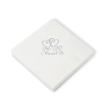 A Pack of Pearl Wedding Anniversary Napkins 15 Luxury 3 Ply Napkins Each Measures 33cm x 33cm Napkin Silver Foil Printed Design on White Napkin Perfect for any 30th Wedding Anniversary Celebration, Manufacturer: NPK Napkins