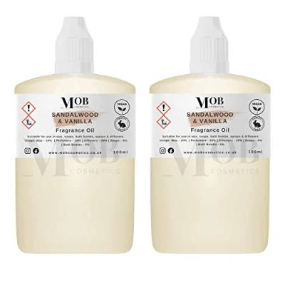 Luxury and Designer Fragrance Oil Highly Concentrated Perfect for Candles, Soaps, Bath Bombs, Diffusers, Wax Melts UK Made Vegan (Sandalwood Vanilla, 100ml (Pack of 2))