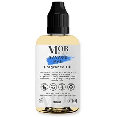 Luxury and Designer Fragrance Oil Highly Concentrated Perfect for Candles, Soaps, Bath Bombs, Diffusers, Wax Melts UK Made Vegan (Savaging Man, 30ml)