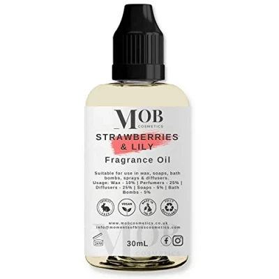 Luxury and Designer Fragrance Oil Highly Concentrated Perfect for Candles, Soaps, Bath Bombs, Diffusers, Wax Melts UK Made Vegan (Strawberries Lily, 30ml)
