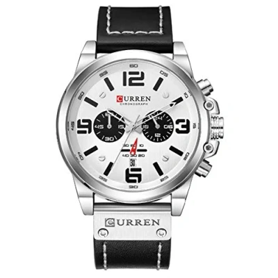 Luxury Brand Men Military Stopwatch Waterproof Leather Chronograph Watch Mens Fashion Quartz Watch, Silver white,