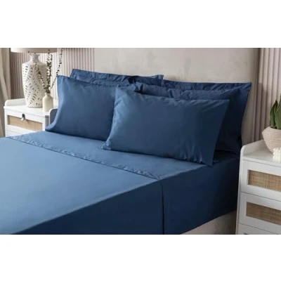 Luxury Fitted Bed Sheet With Matching FREE 2 X PILLOW CASE Plain Dyed Poly cotton Percale Easy Care Genuine 50% polyester (Super King Size, Navy)