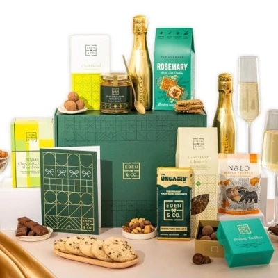 Luxury Gift Hamper Basket, Gourmet Gifts for Women, Men, Couples EDEN & CO Plus 2 Prosecco