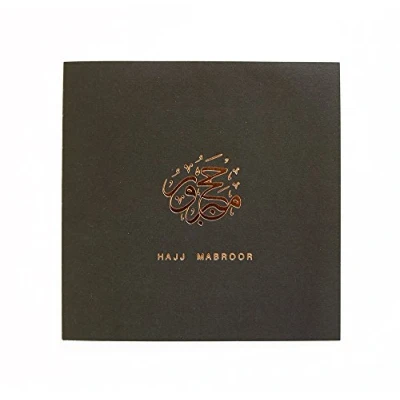 Simply elegant and luxuriously hot foiled on to a textured linen card - Hajj Mabroor - Anthracite Hajj Mabroor - "May Allah bless you with an accepted Hajj" The Messenger of Allah (Peace and blessings be upon him) said “The performance of `umrah is an expiation for the sins committed between it and the previous `umrah; and the reward of hajj mabroor is nothing less than Paradise.” Blank inside and complete with a plain white envelope and sealed in clear sleeve Made in Britain