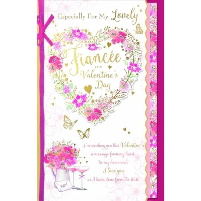 LUXURY HANDMADE VALENTINE'S DAY CARD FOR YOUR FIANCEE - with generous gold foil and tied with a romantic red bow, this card is sure to be treasured by your fiancee for years to come CARD MEASURES 7 X 11 INCHES (20 X 28 CMS) - this premium card is handmade using only the finest quality materials and includes a sturdy envelope ROMANTIC WORDS: the message on the front reads: 'Especially for my lovely fiancee on Valentine's Day. I'm sending you this Valentine's, a message from my heart, to say how much I love you, as I have done from the start' and the message inside reads: 'For you and I together make the perfect team, sometimes I have to pinch myself to prove it's not a dream, each moment we're together makes my heart soar high above, just knowing we're inseparable and totally in love, so let's look towards the future and the years that lie in store, as we share this loving Valentine's and many, many more. With all my love' INSIDE ALSO ILLUSTRATED - open the card to reveal a beautiful floral border and hand-sketched butterflies, with plenty of space for your own loving message DESIGNED BY WISHING WELL STUDIOS - our unique, high-quality cards are created in the UK to mark every occasion, whatever the season.