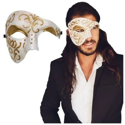 Special edition venetian half mask Popular choice for costume events, mardi gras, mask parties, etc. This mask has been voted most popular for its attention to half face mask. This venetian mask is secured with two silk ribbon ties for easy adjustment. Popular choice for costume events, mardi gras, mask parties, etc, Manufacturer: Luxury Mask