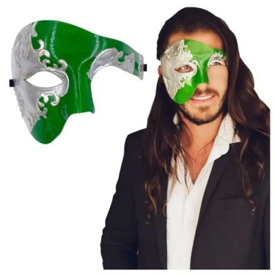 Luxury Mask Half Face Masquerade Phantom Of The Opera One Size Silver/Green