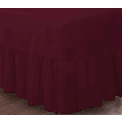 Luxury Plain Dyed Valance Fitted Bed Sheet Frilled Poly Cotton (Burgundy, King)