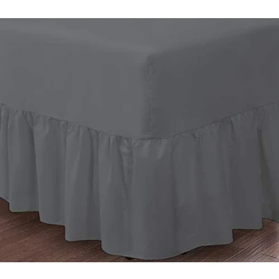 Luxury Plain Dyed Valance Fitted Bed Sheet Frilled Poly Cotton (Silver/Grey, Single)