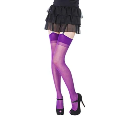 Luxury Plain Top Sheer Stockings by Sentelegri,15 Denier Available 10 Colours (Plus Size, Purple)