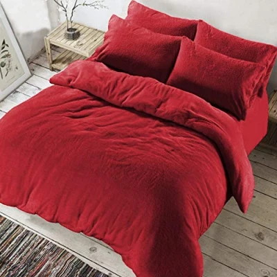 Luxury Super King Red Teddy Bear Fleece Fitted Sheets, Soft Warm Cuddle Bed Sheets Size Sheet