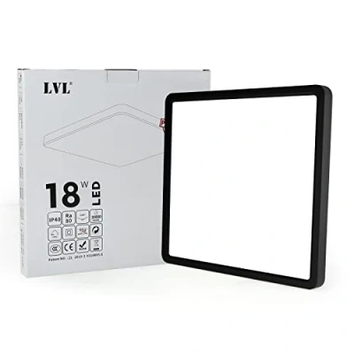 LVL Led Panel Light, 18W 9inch CCT 3 Lighting Color Modern Square Flush Ceiling Light for Hallway, Corridor, Kitchen, Bedroom, Utility Room, Office (Black, 23cm 18W)
