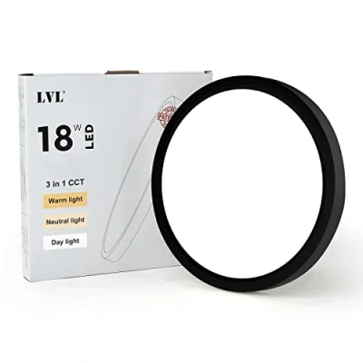 LVL LED Round Ceiling Light, 18W 9inch Lights, Warm Natural Daylight, Modern Flush Lamp for Hallway, Corridor, Kitchen, Bedroom, Utility Room, Office(Black, Φ23cm 18W)