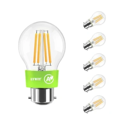 Ultra Efficient: B22 light bulbs meet the standard of Energy Efficiency Class A . Energy savings are high, up to 94% compared to conventional incandescent bulbs and up to 65% compared to common LED bulbs,Energy saving and environmentally friendly B22 led bulb:Long Lifespan / Big Savings - Engineered to last over 50,000 hours ,2.2W longer life compared to conventional LED bulbs,this bulb reduces replacement frequency dramatically, 2.2W equal to 40W incandescent —Money Saving。 Led light bulb retro design: B22 LED bulbs with energy label A class have a standard G45 appearance with B22 base. No tools are required to screw bulbs in the B22 standard base. B22 Golf led bulb-FLICKER-FREE – Enjoy a smooth, comfortable lighting experience with our ECO LED filament light bulbs, designed to be flicker-free and gentle on the eyes,consistent, soft and stable illumination, reducing eye strain and creating a soothing atmosphere for the home or workspace. LVWIT Led light bulb-Trusted Customer Service: we strive to offer our customers fast, convenient and friendly after-sales. For the product, we have 3 years warranty. If you have any questions or concerns, please feel free to contact us.