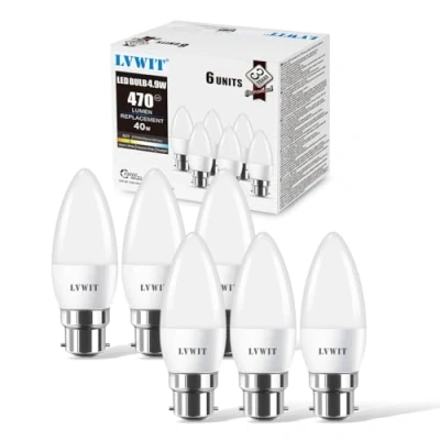 LVWIT B22 LED Bayonet Candle Bulbs 40W Equivalent Incandescent Bulbs, 4.5W C37 Candelabra Bulb Bayonet, 470Lm,2700K Warm White Bayonet,200 Degree Beam Angle,Non Dimmable (Pack of 6)