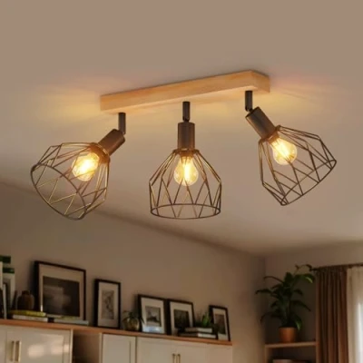 ceiling light fixtures offers E14 sockets and is designed for LED bulbs. Suitable as well for conventional bulbs of 40Watt max (heat dissipation of light bulbs easy and not effect bulbs usage lifespan) 3 spotlight ceiling light :High Quality Material The spot lights ceiling is made of high quality Wood+Iron ,which features rust-resistant, durable and sturdy. Rotatable and Adjustable:LED ceiling light fitting heads can be vertically rotated to 180° and horizontally rotated to 350°. Three swing arms with adjustable lights allow you to DIY the light direction to customize your own lighting effects and illuminate the desired part of your room. Black light shade Replaceable E14 Bulb: Choose your favorite E14 bulb (bulb not included). It is recommended to use LED bulbs no more than 40W. According to your personal needs, you can also choose dimmable bulbs or smart bulbs to get different mood lighting. Ceiling lights rotatable bulb base makes the installation diversified, this led ceiling spot lights can be used as ceiling light or wall light, also suitable for kitchens, living room, bedroom, hallway.