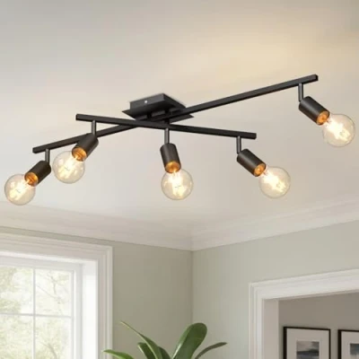 Kitchen lights ceiling :setting for easy installation of E27 bulbs.(no including Bulbs )- Suitable as E27 bulbs of 40Watt max- ( heat dissipation of light bulbs easy and not effect bulbs usage lifespan)-AC220-240V/50Hz Adjustable Ceiling Spots- can be tilted 180° and swiveled 350°swivel function, the spotlight head allows you to cast the light to suit your space. Can be placed on a ceiling and offer directional light TECHNICAL: This ceiling light fitting is made of high-quality metal, with good texture. Modern contemporary design, the surface is moisture-proof and rust-proof, durable and sturdy,Applied metal plating technology. Modern Design -spotlights you can also choose dimmable bulbs or smart bulbs to get different mood lighting,the spotlight ceiling light with modern unique design adds personality to your room, make enough to illuminate your living place and create comfort atmosphere. Wide Applications: Spotlight ceiling design is simple, it can be widely used in living room, kitchen, bedroom, corridor, stairwell, and lounge. It can be installed on the wall or on the ceiling as indoor lighting