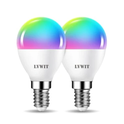 LVWIT E14 Dimmable Smart led Bulb, Golf Ball Bulb E14,470Lm, 4.9W Replace 40 Watt, Compatible with Alexa,Echo,Google Assistant Light Bulbs,E14 Color WiFi (2PCS)