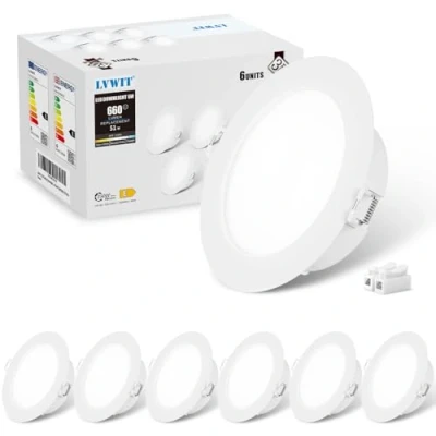 LVWIT LED Downlight Ceiling,6W Ultra Slim Recessed Ceiling Spot Lights,6500K Cool White Spotlights Lights for Bathroom Kitchen Living Room,Non Dimmable,660LM,6 Pack