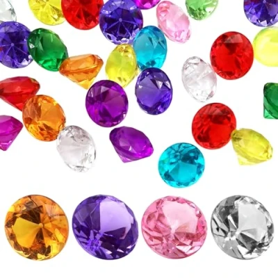 LYHLYA Pack of 100 Gemstones for Children, Acrylic Diamonds, 25 mm, Decorative Gemstones, Fake Vase Fillers, Wedding Vases, Table Decoration, Party (Mixed)