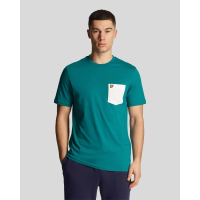 Lyle & Scott Basic Men's T Shirt with Contrast Chest Pocket, X166 Court Green / White, L
