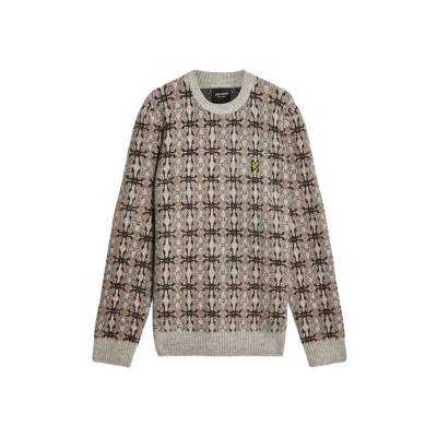 Lyle & Scott Brushed Intarsia CREW NECK Jumper, Men's, Size: Large, Light grey marl