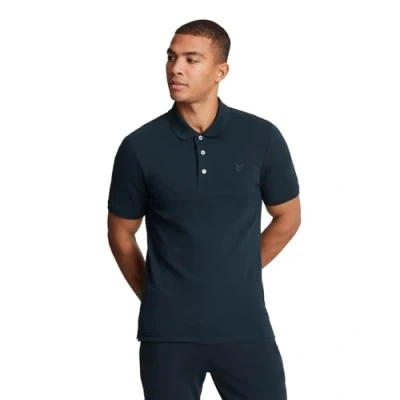 Lyle & Scott Mens Tonal Eagle Navy Blue Polo Shirt Cotton Size Small