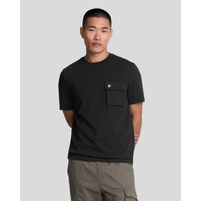 Lyle & Scott Mens Woven Pocket T Shirt in Black Cotton Size X Small