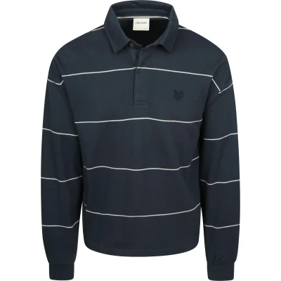 Lyle and Scott Rugby Polo Shirt Stripe Navy Lyle and Scott Rugby Polo Shirt Stripe Navy in the color Blue and Dark Blue with a fit Regular-Fit is made from Cotton and Polyester with a Striped design and Long sleeves.