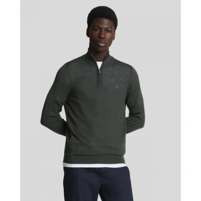 Lyle & Scott Tonal Eagle Merino Mens Quarter Zip Jumper Dark Grey Wool Size X Large