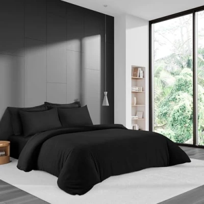 LYMA Bedding Duvet Cover Set King Plain, OEKO TEX Certified, Ultra Soft NanoPlush Double Brushed Quick Dry Fabric with Button Closure, Wrinkle Fade Resistant Quilt Pillowcases (Black)