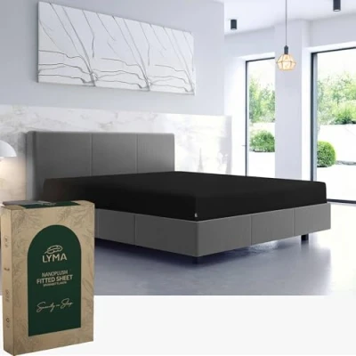 LYMA Bedding Fitted Sheet Single, Deep Pocket 30CM, OEKO TEX Certified Ultra Soft Nanoplush Double Brushed Quick Dry Fabric, Shrink Wrinkle & Fade Resistant Easy Care Elastic Bottom (Black)
