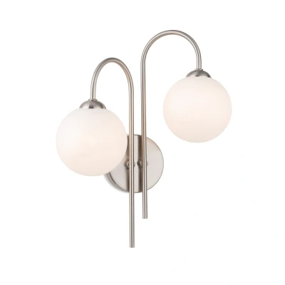 Lyndon 2 Light Globe Wall Brushed Steel with Opal White Glass