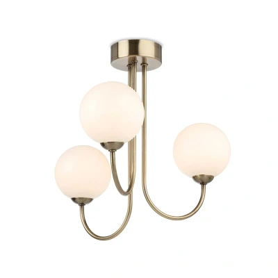 Lyndon 3 Light Globe Flush Fitting Antique Brass with Opal White Glass
