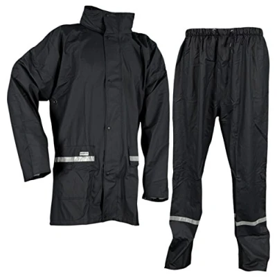 Jacket: hood with drawstring, hidden in collar Trousers: elasticated waist with drawstring Material: 50% polyester, 50% polyurethane, 170 g/m², Weight: 1.322773572 Pounds, Manufacturer: Lyngsoe